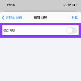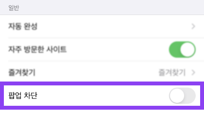 아이폰 설정 > 목록에서 사파리 선택 > 일반 [팝업 차단] 체크 해제