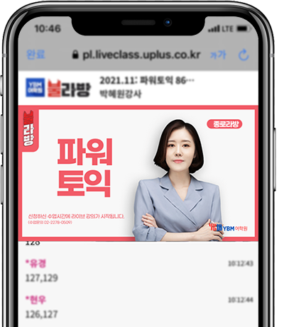 ■ LGU+ 솔루션 과목 : YBM어학원 로그인 > 마이페이지 > 불라방보기 > 메인 강의 다시보기 또는 학습자료 - 다시보기